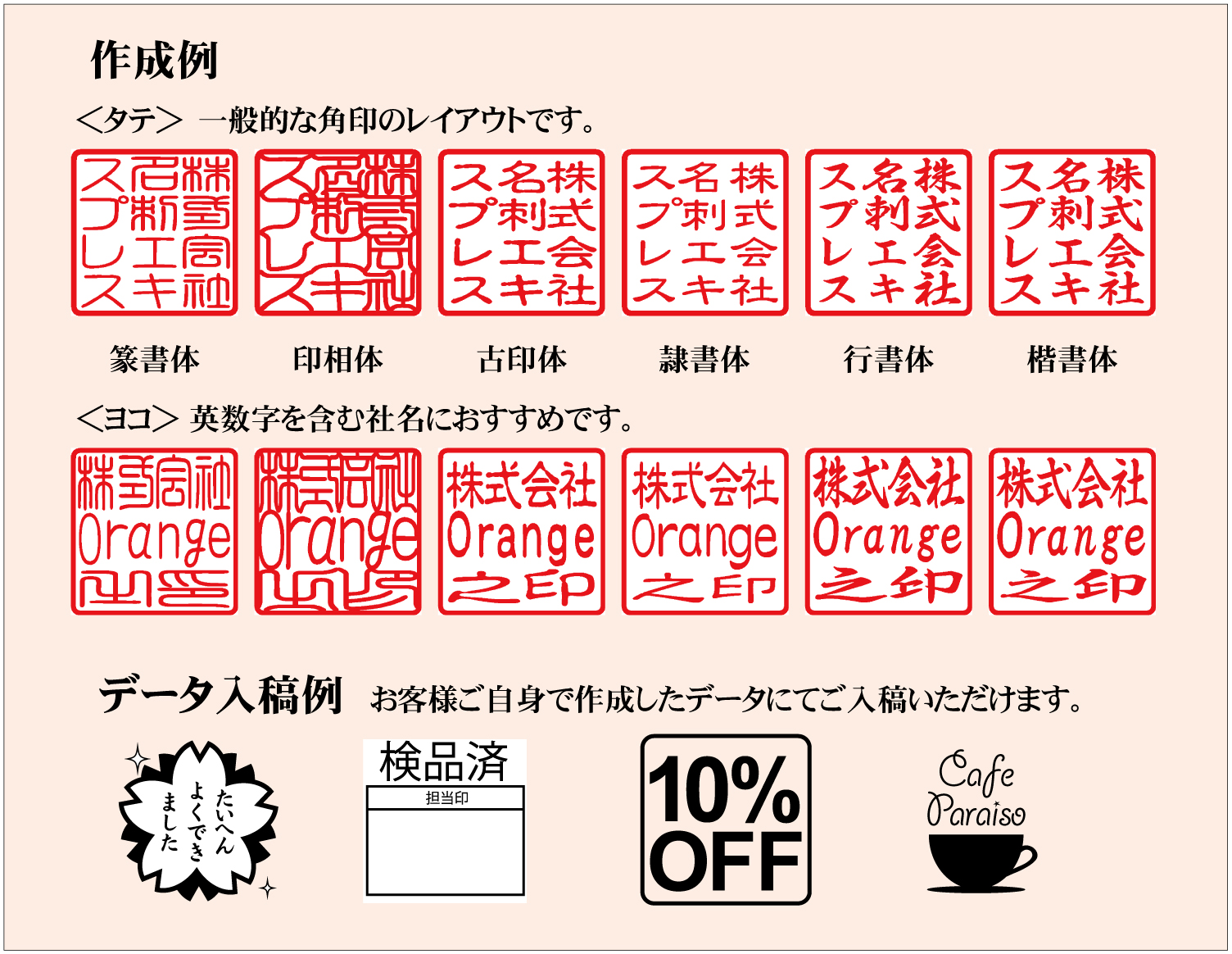 また、データによるご入稿も承っておりますので、紙袋等に押すゴム印としてご活用されている方もいらっしゃいます。